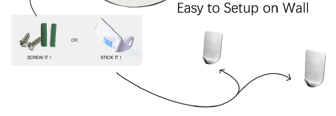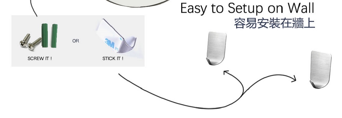 安裝時可以收螺絲入牆, 或者可用特黏雙面貼紙/掛勾掛牆